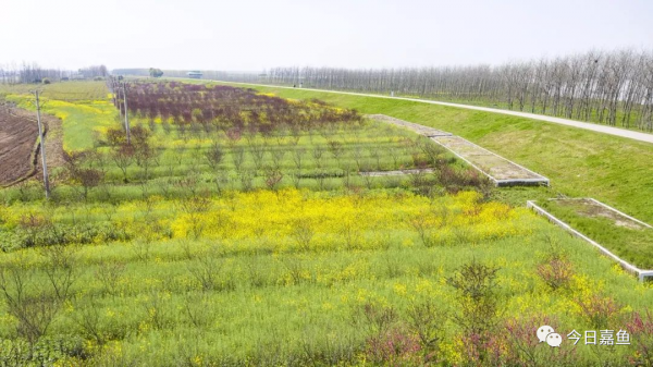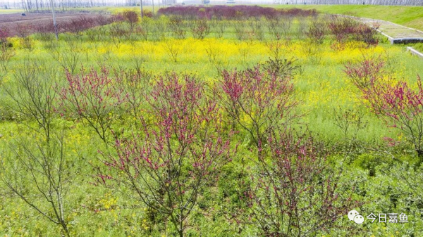 3月24日,长江嘉鱼四邑公堤潘家湾管理段,桃花、樱花、多品茶花、油菜花,竞相开放,花香扑鼻,如同一幅长长的国画画卷。