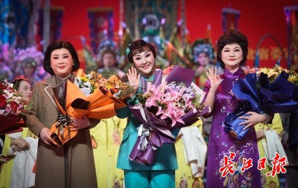 李仙花(右一)、王荔(中)、彭玲(左一)演出完毕后合影。长江日报记者许魏巍 摄