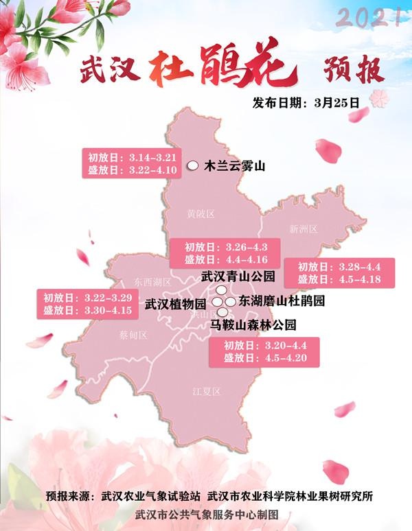 武汉农业气象试验站和武汉市农业科学院林业果树研究所联合发布的最新杜鹃花预报: