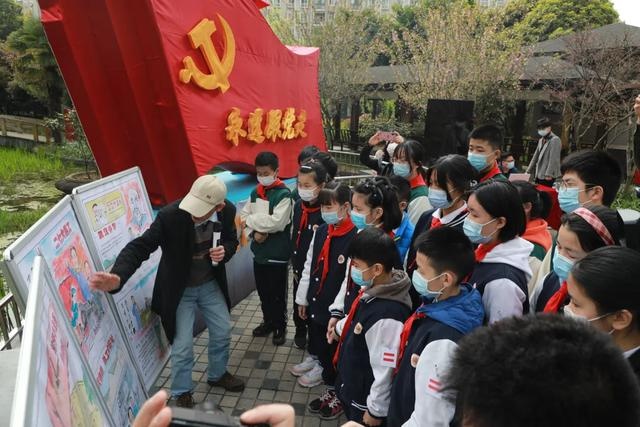 “武汉是红色热土、英雄城市,武汉有着武汉中共中央机关旧址纪念馆、武汉二七纪念馆、八七会议会址纪念馆等红色地标,拥有丰厚的红色文化底蕴。我用手中的笔将这些红色地标画下来,让居民去了解、打卡学习这些丰富的党史知识和党史故事。”退休老党员王景民站在自己创作的漫画展板旁介绍。
