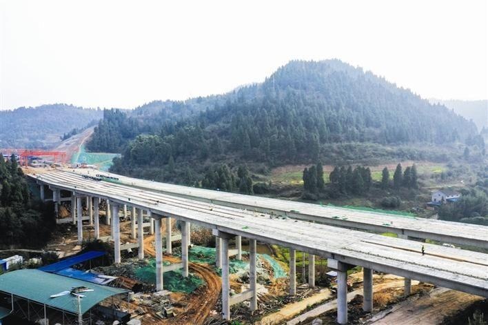 “我们已完成土石方、桥梁下构、预制箱梁及架设。目前,已全面转入路面、桥面及绿化等附属工程的施工。路面水稳摊铺完成30%,附属工程完成65%,预计7月建成通车。”项目现场负责人王祥介绍。