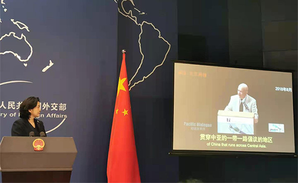 在3月26日外交部例行记者会开始后,外交部发言人华春莹向在场记者展示了一段视频。