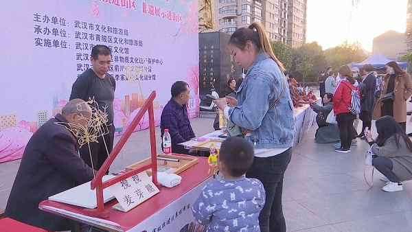 在活动现场的黄陂泥塑、湖北大鼓、黄陂糖画、黄陂剪纸等非遗展位,记者看到,泥人精雕细琢、糖画精致飞扬、剪纸亦真亦幻,竞相绽放出黄陂独特的民间艺术和传统文化魅力,吸引了不少市民驻足观看。