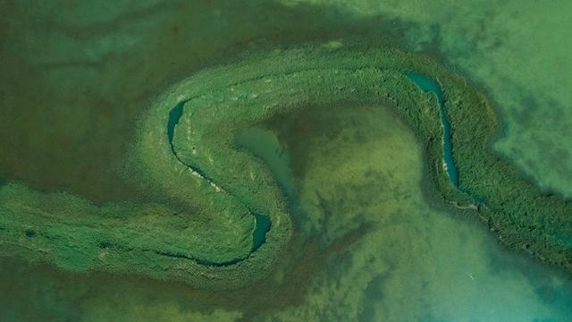 这是2019年7月27日无人机拍摄的察尔汗生态湿地一角。新华社记者赵玉和 摄