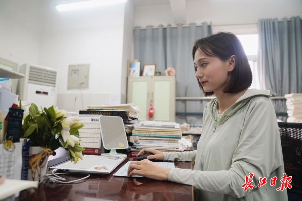 陈涵为学生整理生涯规划资料。 记者彭年 摄