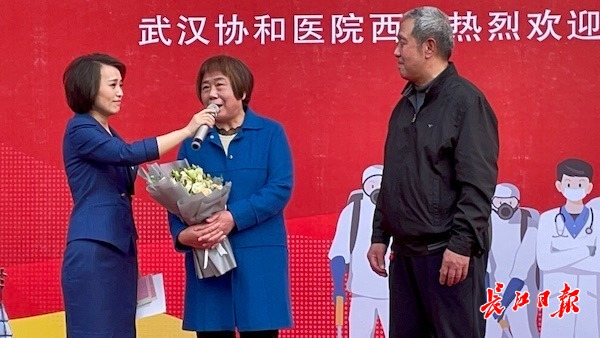 图中间为第1000位康复出院患者69岁的王婆婆。长江日报李冀摄