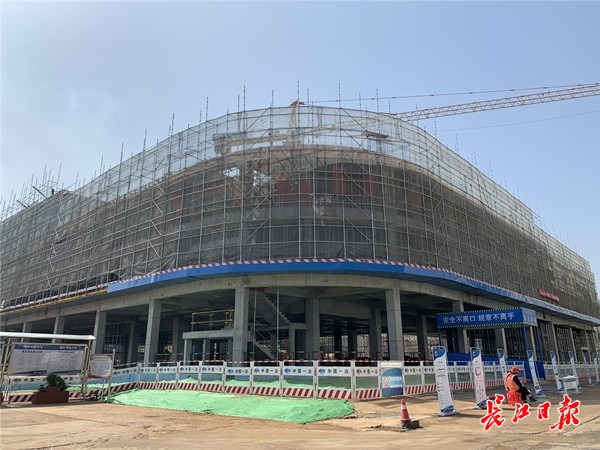 武汉经开区人工智能科技园新建科技研发楼采用“盘扣式”脚手架。 记者陶常宁 摄