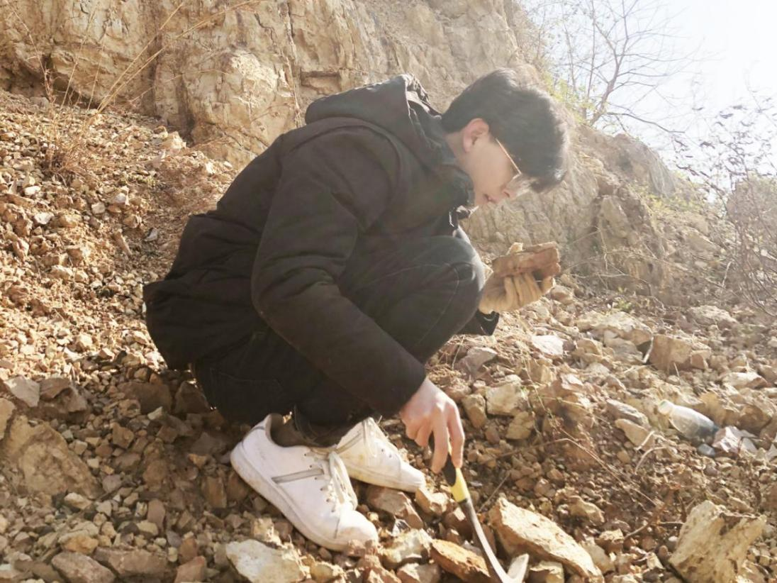 刘一龙在野外采集化石。 通讯员王紫璇 摄
