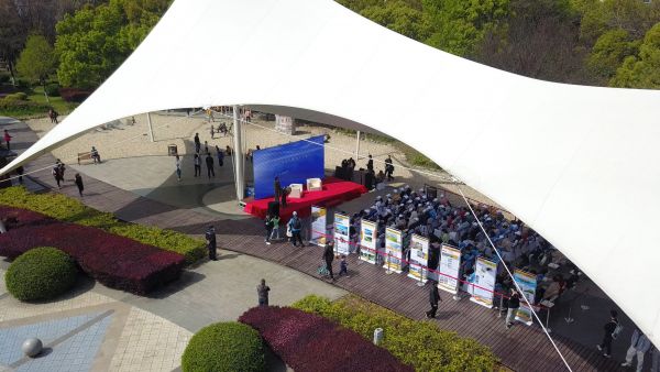 市民在江滩大讲堂前驻足。 市江滩办 供图