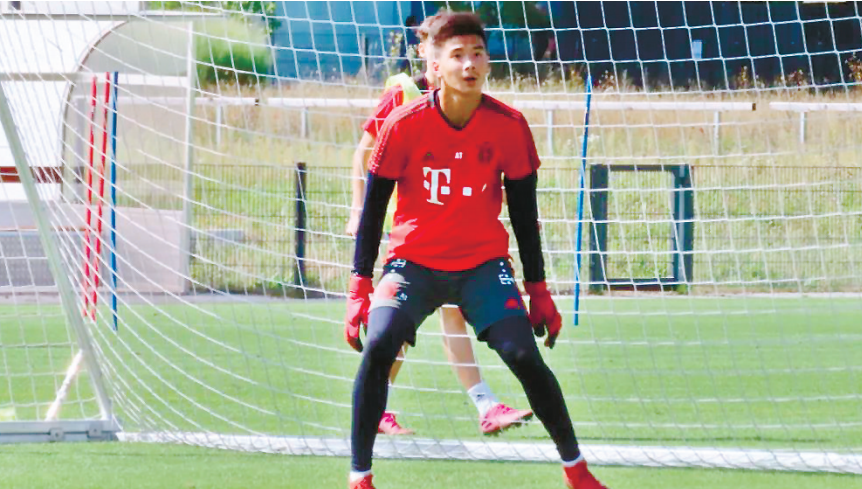 刘邵子洋在拜仁慕尼黑青训基地训练。