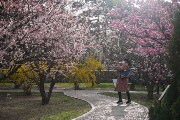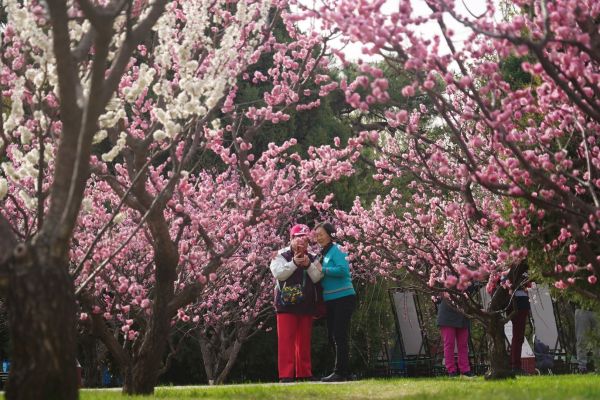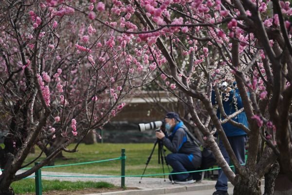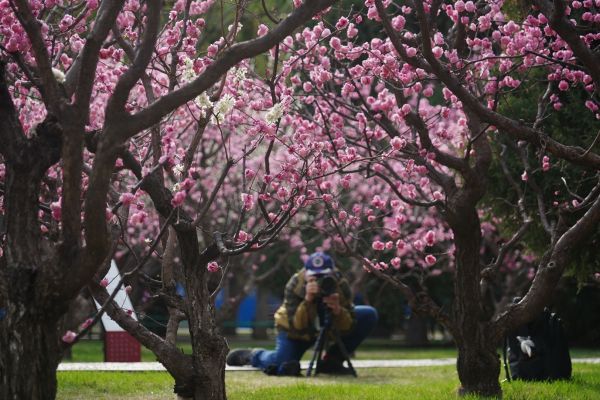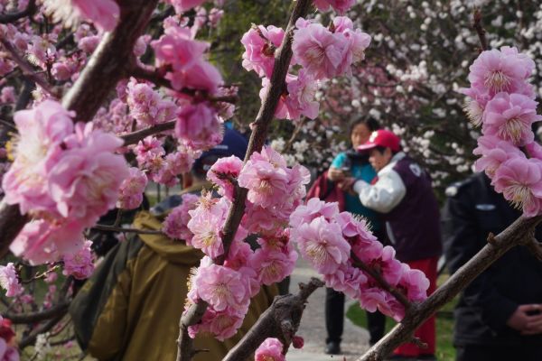 3月29日,中山公园梅园里30余种110余株梅花盛开。