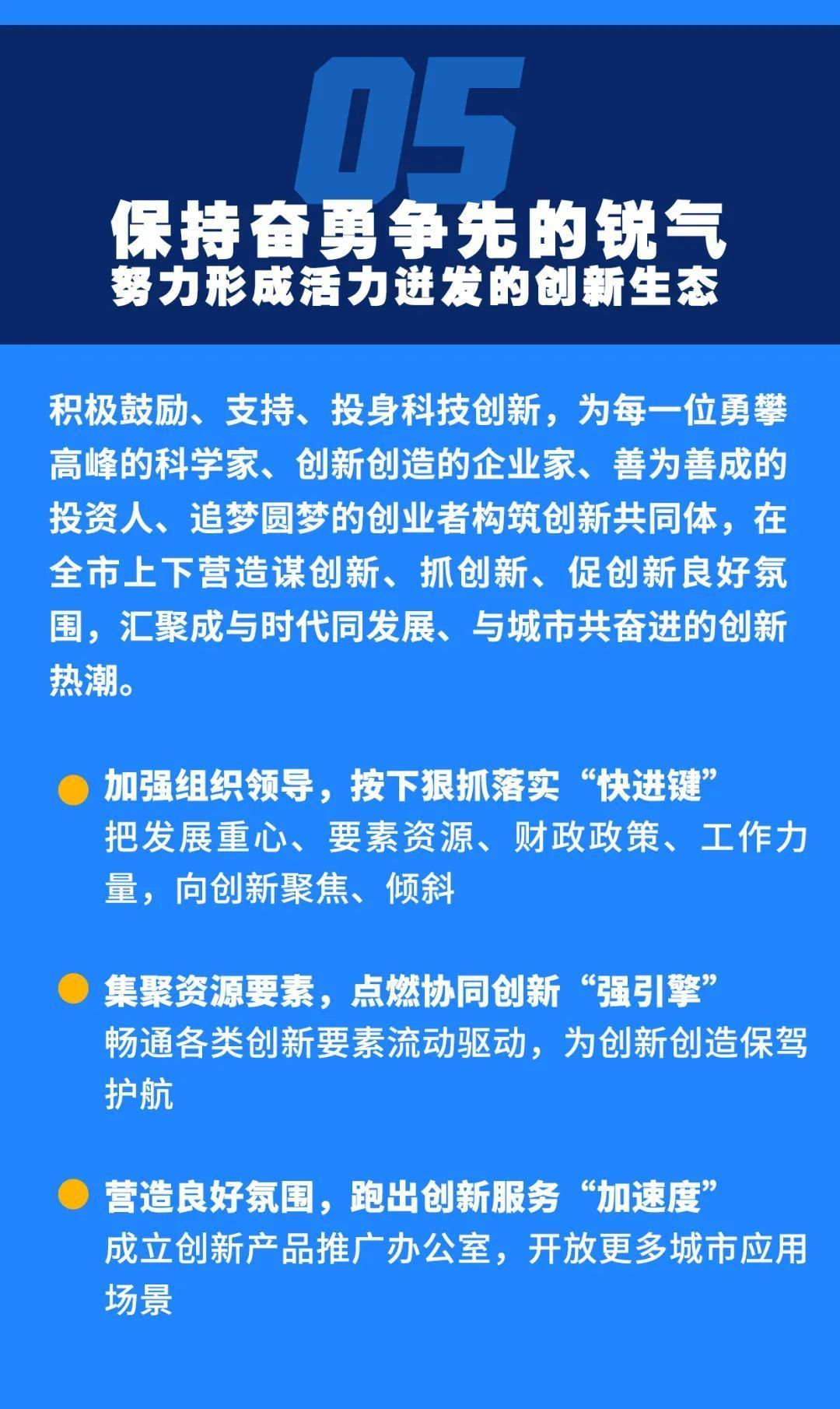 推进科技创新,不为一事谋、一时谋,而是为全局计、为长远计。会议要求,全市上下必须切实担起科技创新之责,保持奋勇争先的锐气,努力形成活力迸发的创新生态,积极鼓励、支持、投身科技创新,为每一位勇攀高峰的科学家、创新创造的企业家、善为善成的投资人、追梦圆梦的创业者构筑创新共同体,在全市上下营造谋创新、抓创新、促创新良好氛围,汇聚成与时代同发展、与城市共奋进的创新热潮。