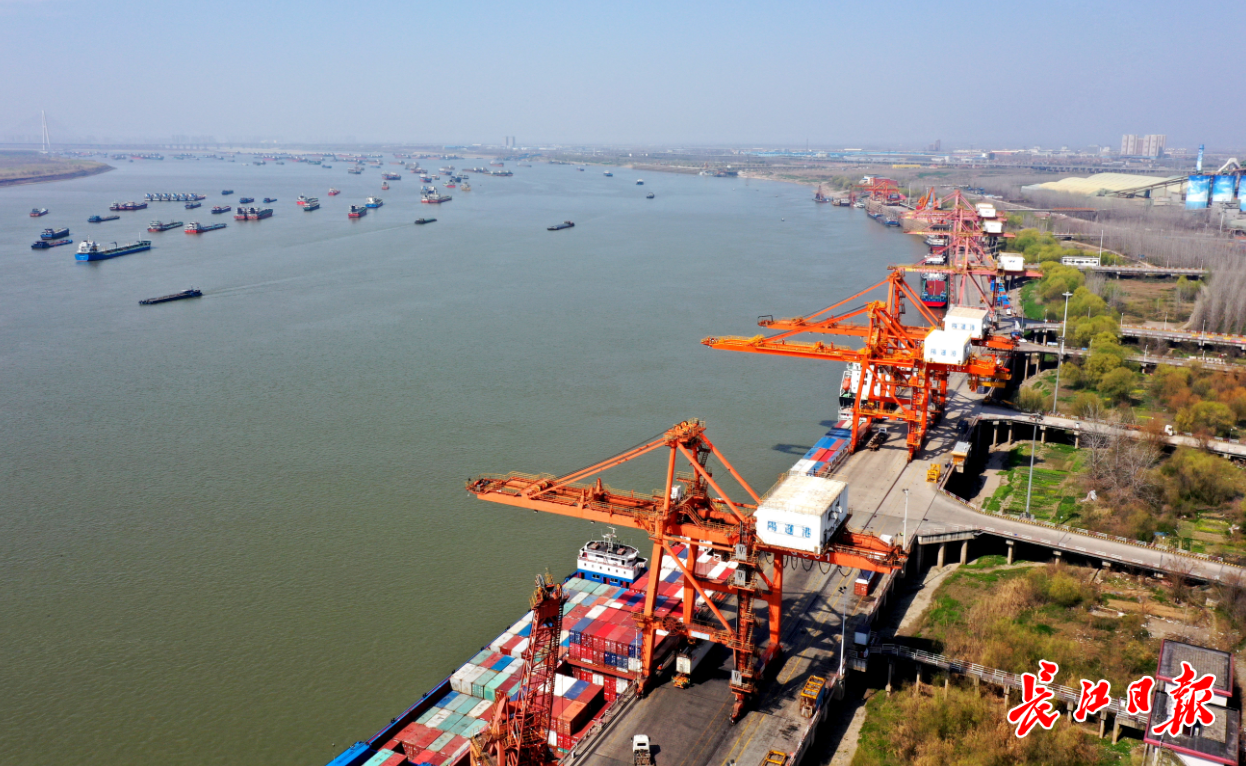 近日,阳逻港一期码头一片繁忙,三艘货轮正停靠在码头上货、卸货,龙门吊、卡车司机配合精准到位,车辆出入有序。其中一艘是往返日本的“华航汉亚2号”轮正在卸货。阳逻港水铁联运已让“汉货”通达四海。长江日报记者刘斌 摄