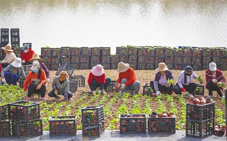3月28日,工人们在梁家滩运动公园栽种绿植。