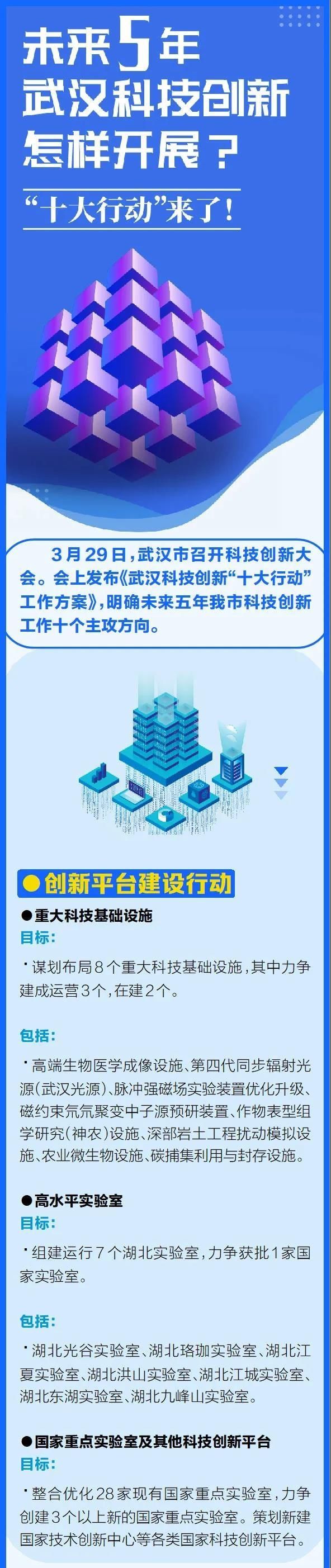 3月29日上午,武汉科技创新大会隆重召开,会议对全市科技创新工作进行了部署,明确了未来五年武汉市科技创新工作的十个主攻方向,推出了全市科技创新“十大行动”计划。