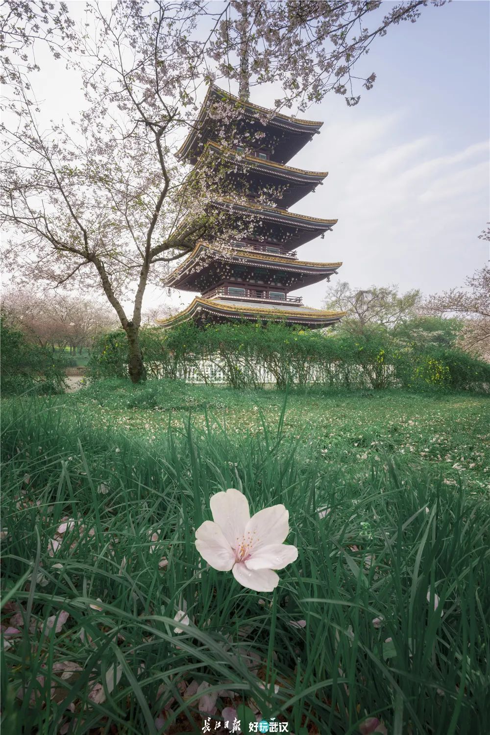 五重塔下落樱缤纷。城市摄影队 张擎 摄