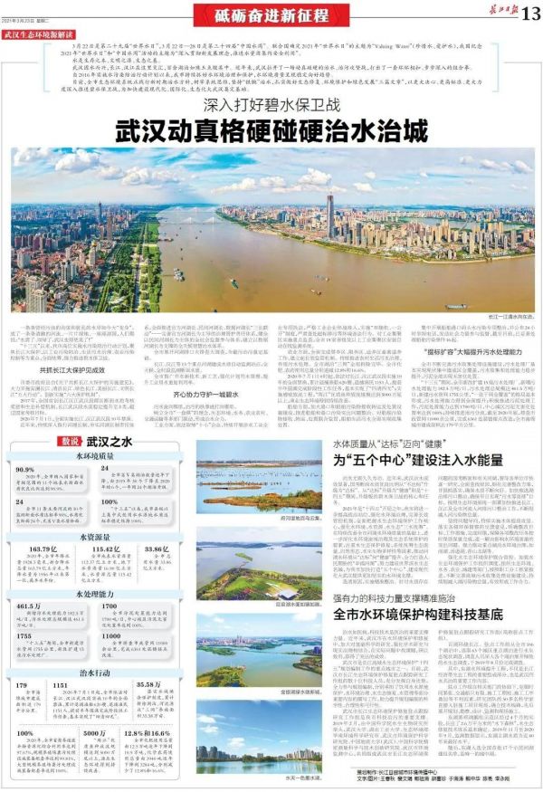 近日,《长江日报》刊发《深入打好碧水保卫战 武汉动真格硬碰硬治水治城》,具体报道如下: