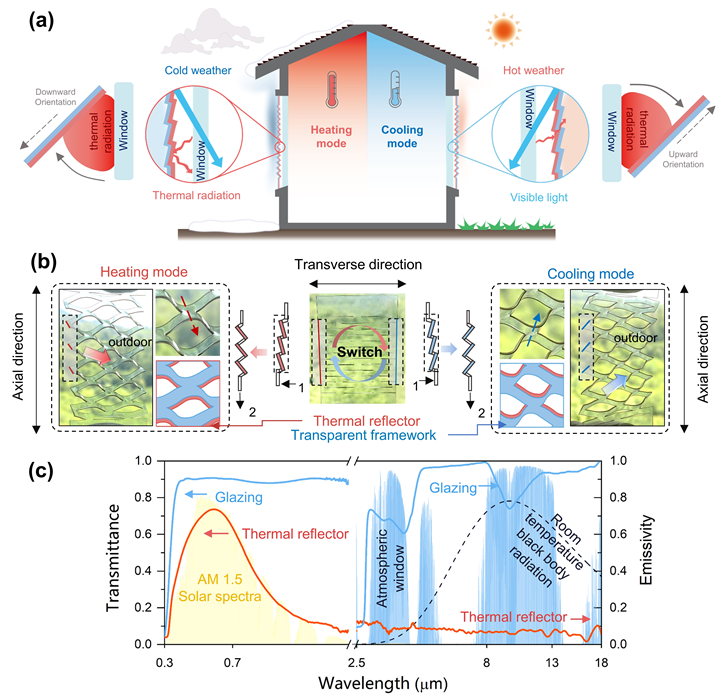 长江日报大武汉客户端7月12日讯(记者杨佳峰 通讯员高翔)一张薄膜用剪纸工艺加工后,固定在窗户上,夏天能降温、冬天能保暖。日前,华中科技大学武汉光电国家研究中心胡彬教授团队将传统剪纸技术与建筑围护巧妙结合,用剪纸技术将二维平面薄膜材料快速变身为三维立体结构,设计了一种面向节能窗的薄膜材料,该剪纸薄膜能够通过调节窗户的热辐射角度,使窗户在被动制冷—保温模式间切换,为低碳建筑的设计提供了一种新思路。相关成果发表在《Research》(Research,2023:6,0103)上。