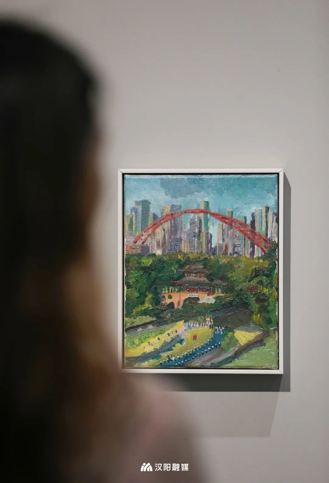 △作品《江城组图》,以武汉市的标志性建筑黄鹤楼和龟山电视塔为画作的点睛之笔,创作出大江大河大武汉的优美景色。
