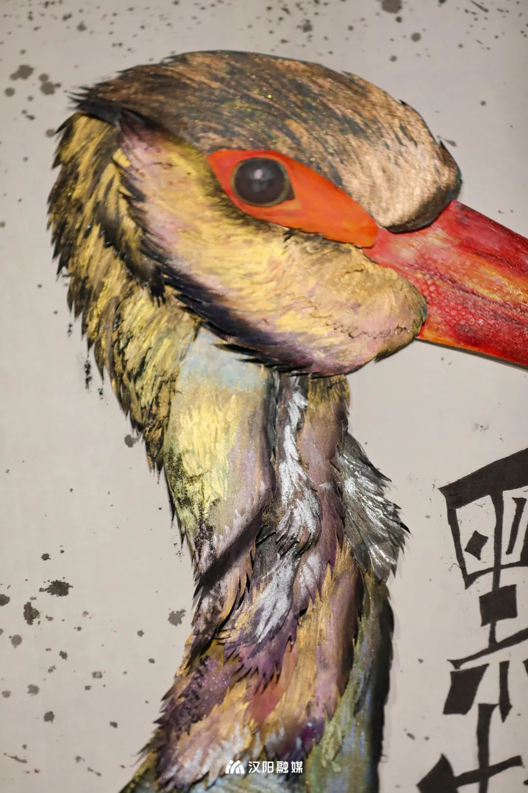 △作品《鸟集鳞萃》,纸片做的鸟类羽毛,近看像真的一样。