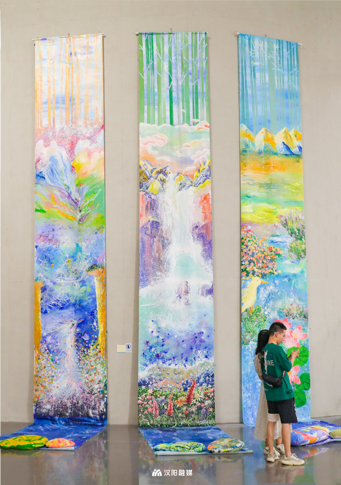 E展厅多以架上绘画为主,两百余件形式多样的创作作品将展览分为湿地美境、湿地畅想、三维湿地和水文化四个单元。