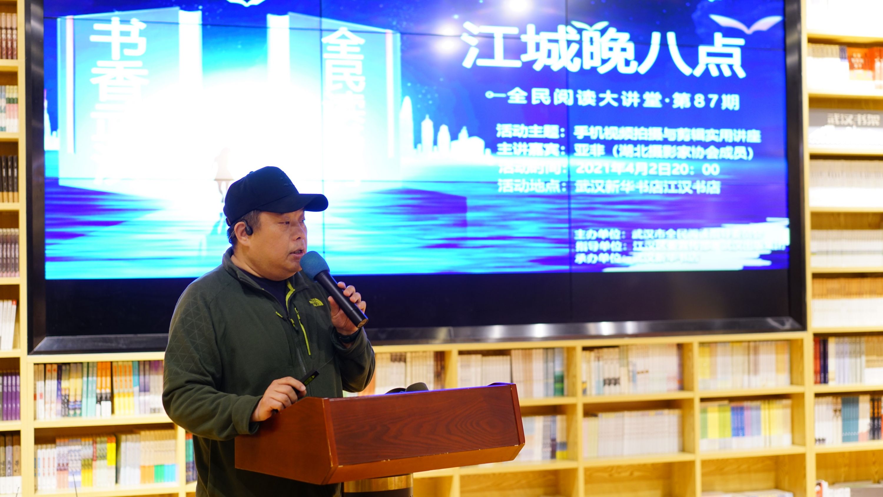 “2021书香武汉—全民读书月”活动由武汉市委宣传部、武汉市教育局、武汉市文化和旅游局、武汉市全民阅读办公室主办,武汉出版集团总承办,于4月1日在武汉新华书店拉开序幕。“书香武汉·江城晚八点”是今年开启的全新都市文化夜读活动,每晚八点,以武汉新华书店江汉书店为主会场、武汉新华书店旗下各门店为分会场,展开全民阅读盛宴。与其他阅读活动作家、名人当主角不同,“江城晚八点”致力于做武汉人自己的读书会,向普通市民广发英雄帖,只要你有好的阅读故事,都可以上台当主讲人,目的是把市民吸引到书中来,一群人影响另一群人,形成全民参与的夜读生活方式。