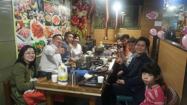 李哲勋与韩国友人就餐。李哲勋提供