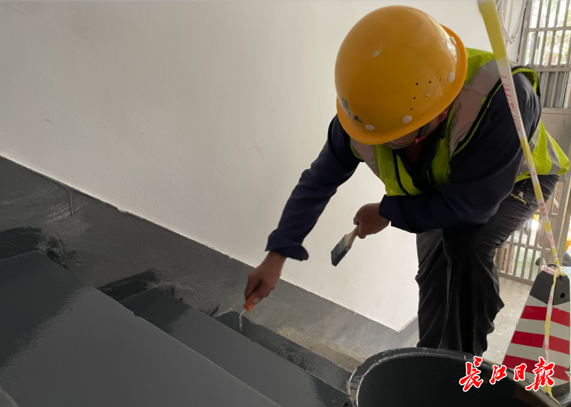 27日上午,记者再次来到该小区发现,施工方已经展开整改,施工人员正用灰色油漆,对楼梯进行粉刷。
