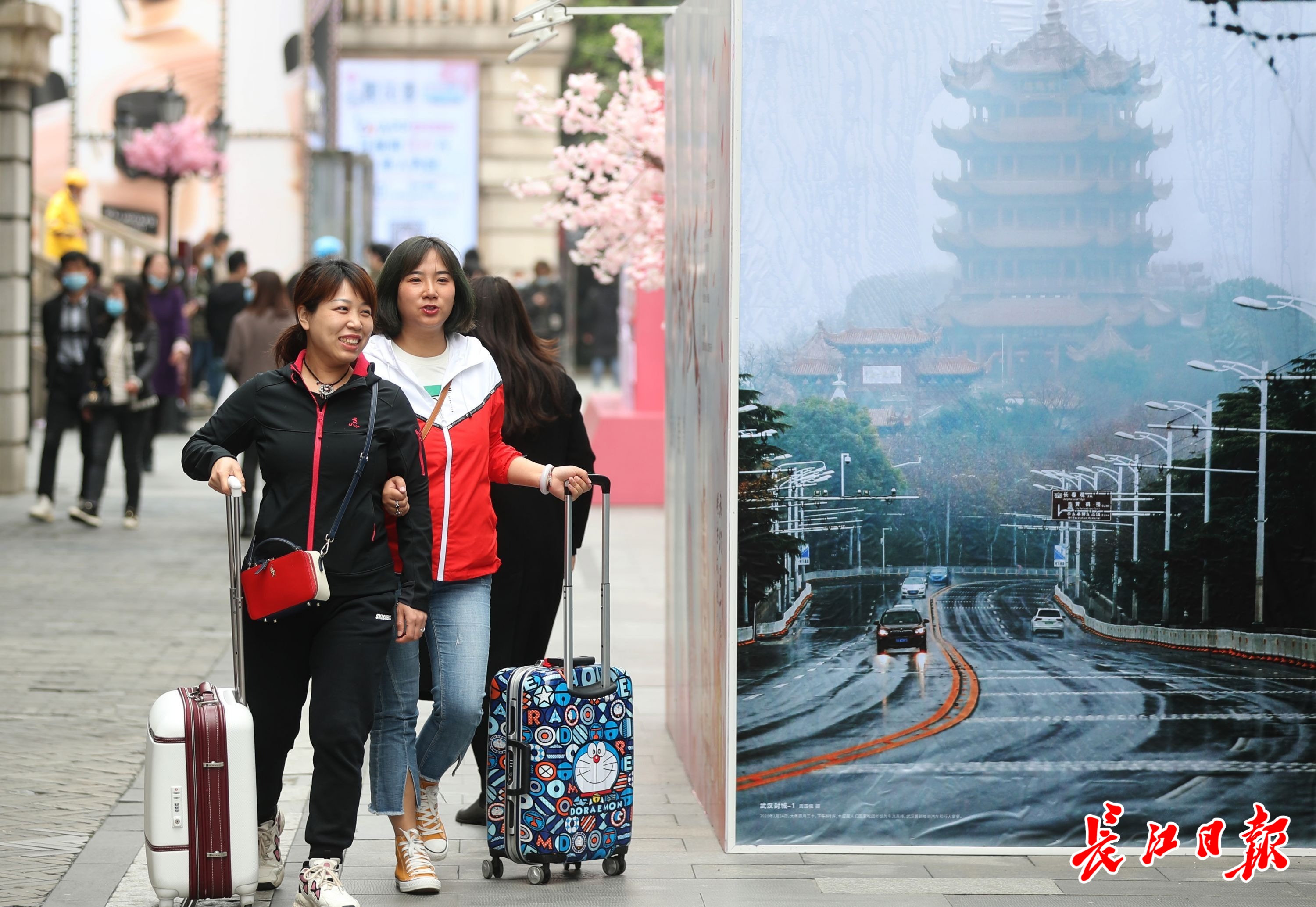 去年疫情期间,楚河汉街曾商户闭门、空无一人。8日虽然不是周末,楚河汉街依然人头攒动,人气很旺。