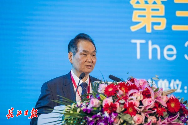 开幕式现场,湖北省人民政府经济顾问、湖北省楚商联合会会长陈东升致辞。长江日报记者胡冬冬 苗剑摄