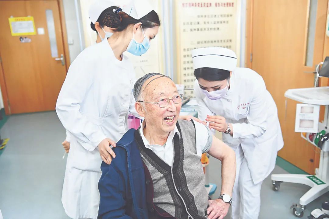 “It's good to be vaccinated. I'm very assured because the inactivated vaccine is the kind of vaccine most widely used in China,” said Yin Hongfu, an 86-year-old academician of the Chinese Academy of Sciences and professor of China University of Geosciences. He received the COVID-19 vaccine shot at Zhongnan Hospital of Wuhan University on April 1. People aged 18 to 70, with their ID cards, can go to the nearby vaccination service centers to receive vaccination directly without making an appointment beforehand.