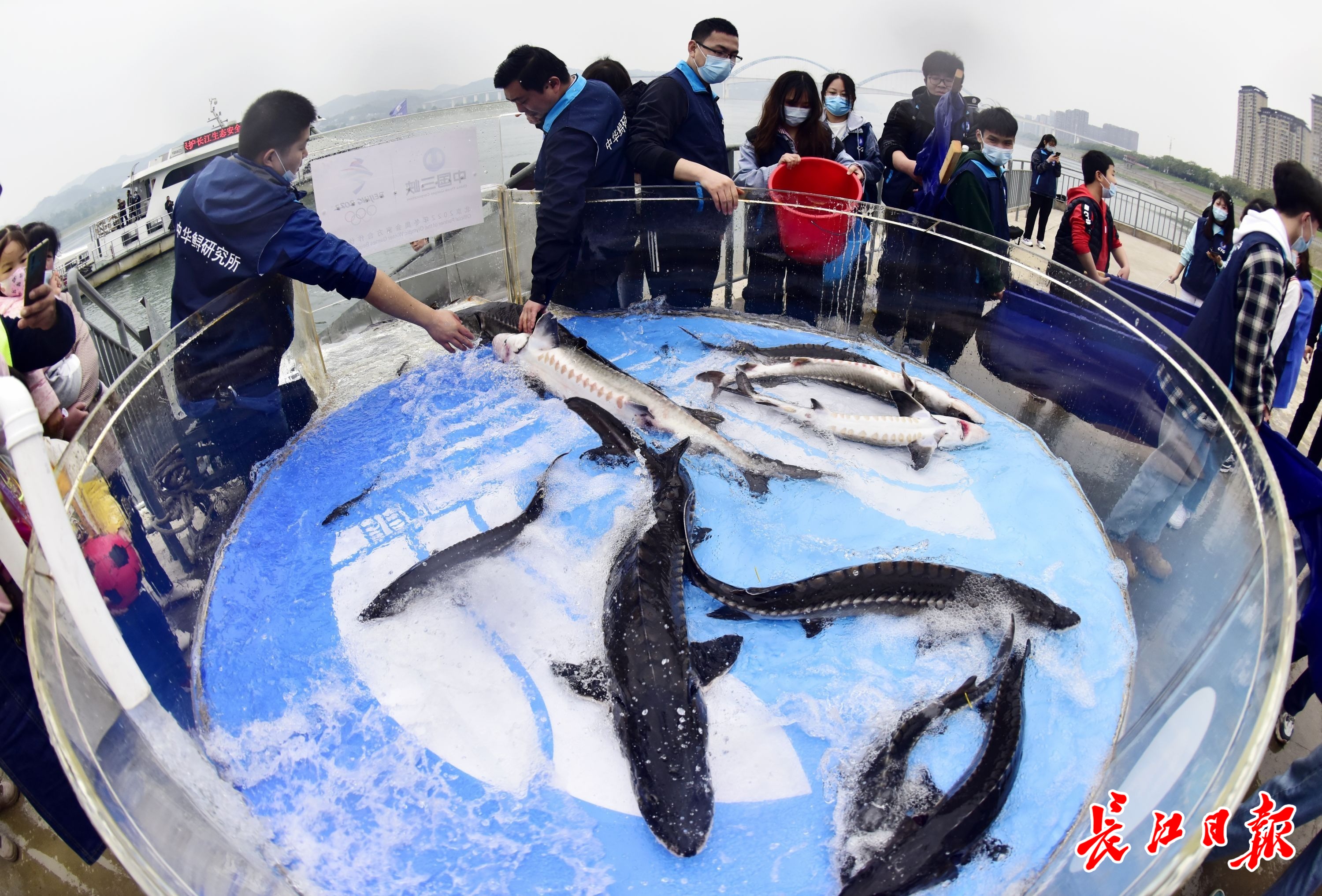 中华鲟是地球上最古老的脊椎动物之一,距今已有1.4亿年历史,是长江珍稀特有鱼类保护物种,被称为“活化石”。此次春季放流是长江保护法和“长江十年禁渔计划”实施后首次开展的大规模中华鲟放流活动,为保护长江和促进中华鲟自然种群恢复创造了有利条件。(通讯员张伟革 摄影报道)