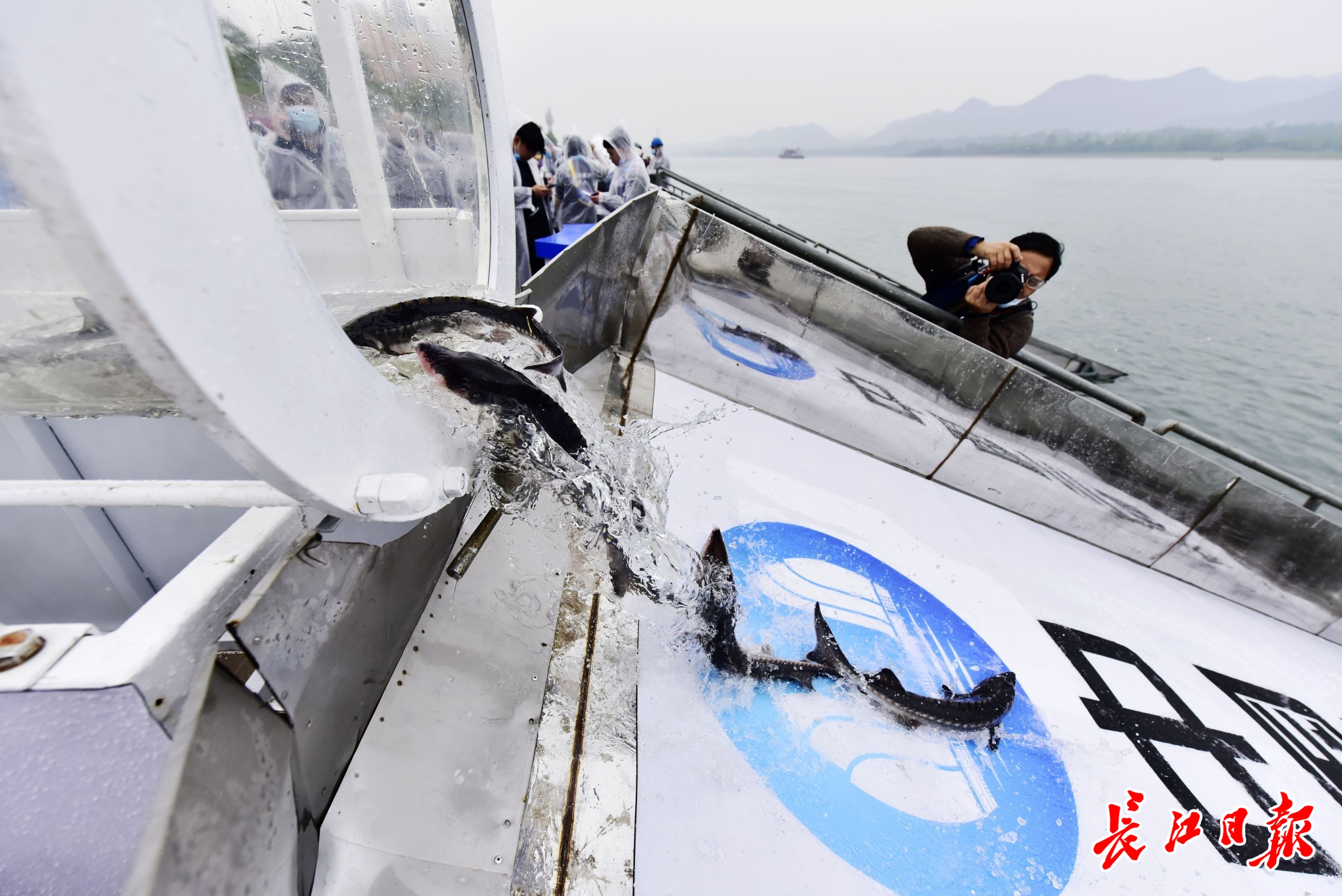 长江日报4月10日讯 4月10日上午,湖北宜昌春雨绵绵,10000尾子二代中华鲟放归长江,总重量13000多公斤。这是长江三峡集团实施的第64次中华鲟放流,累计已向长江放流中华鲟超过504万尾。