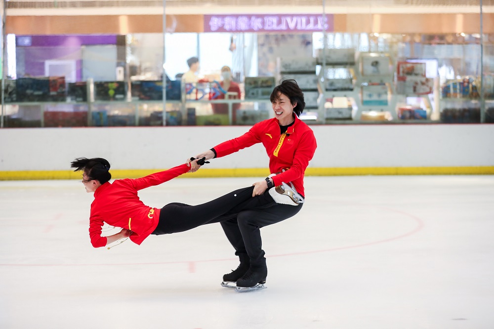 在公益课结束前,庞清、佟健还联袂表演了一组高难度的冰上托举动作,令现场观众赞叹不已。下场时,小选手们将两人包围,拿出纸笔请求签名。从孩子们的眼神中可以看出,世界冠军们已点燃了他们心中的冰雪梦想。