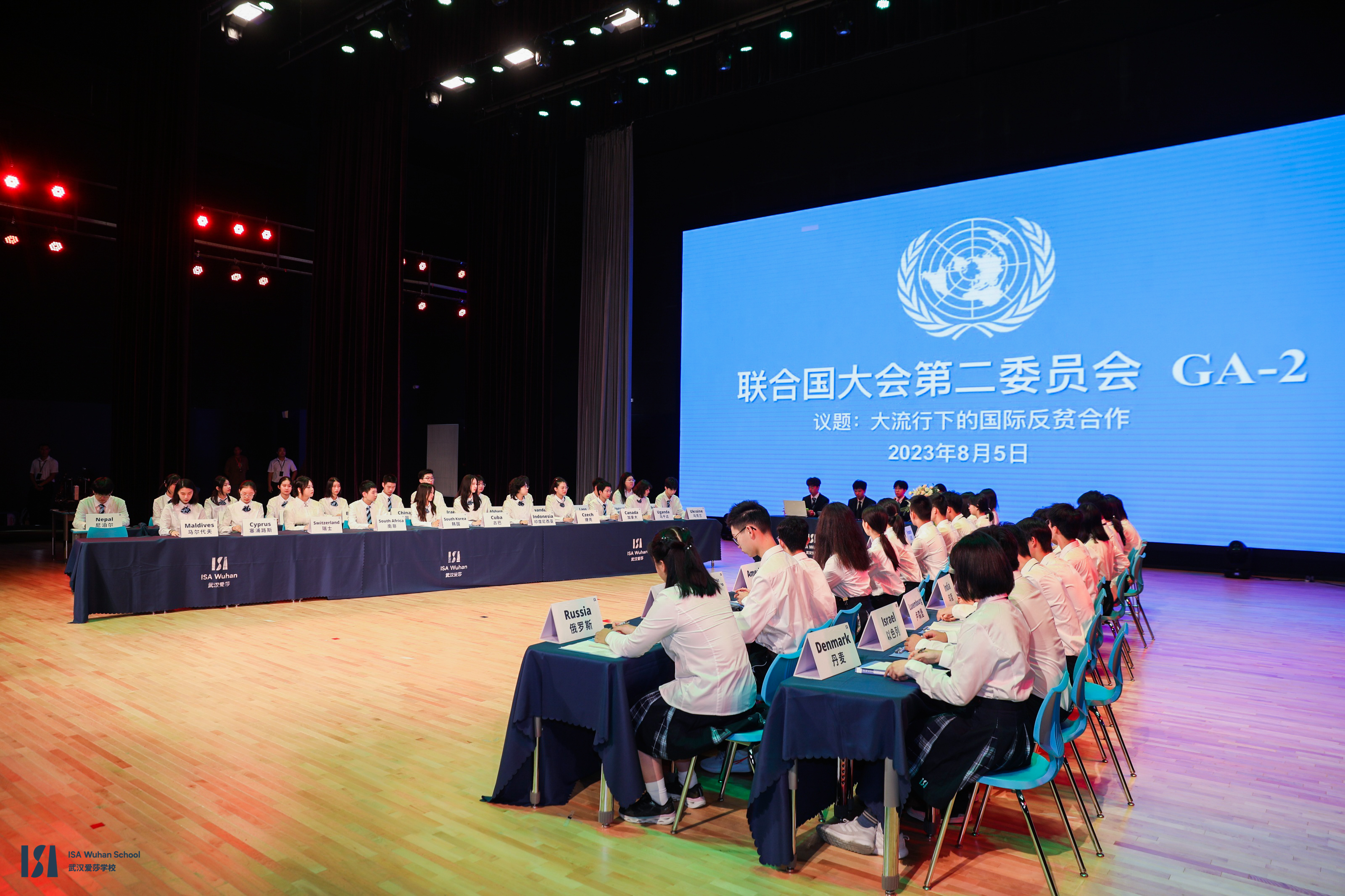 学生模拟联合国代表大会。