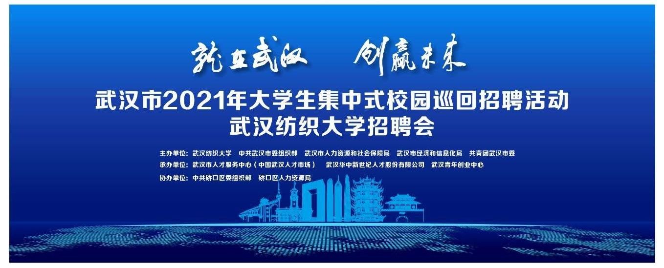本场次活动作为今年集中式校园巡回招聘活动第二场,由武汉纺织大学、中共武汉市委组织部、市人社局、市经信局、共青团武汉市委主办,武汉市人才服务中心、武汉青年创业中心、武汉华中新世纪人才股份有限公司承办,中共硚口区委组织部、硚口区人力资源局协办。