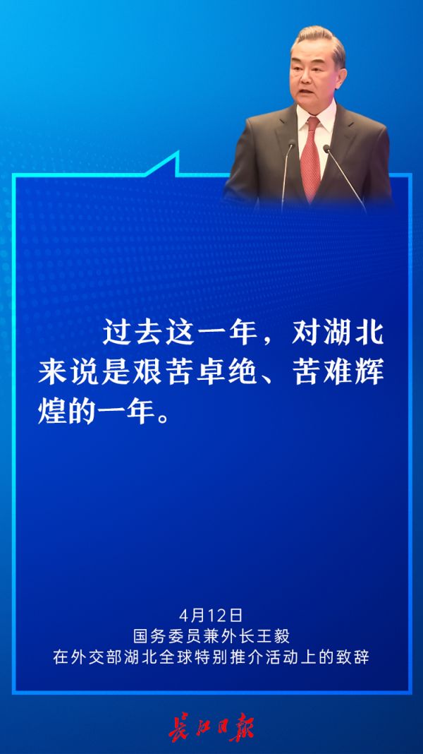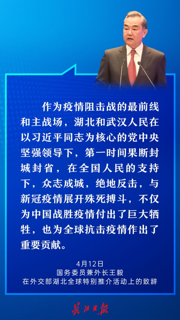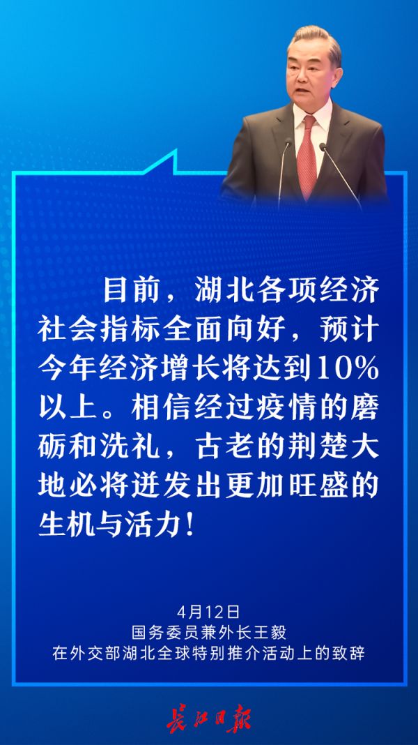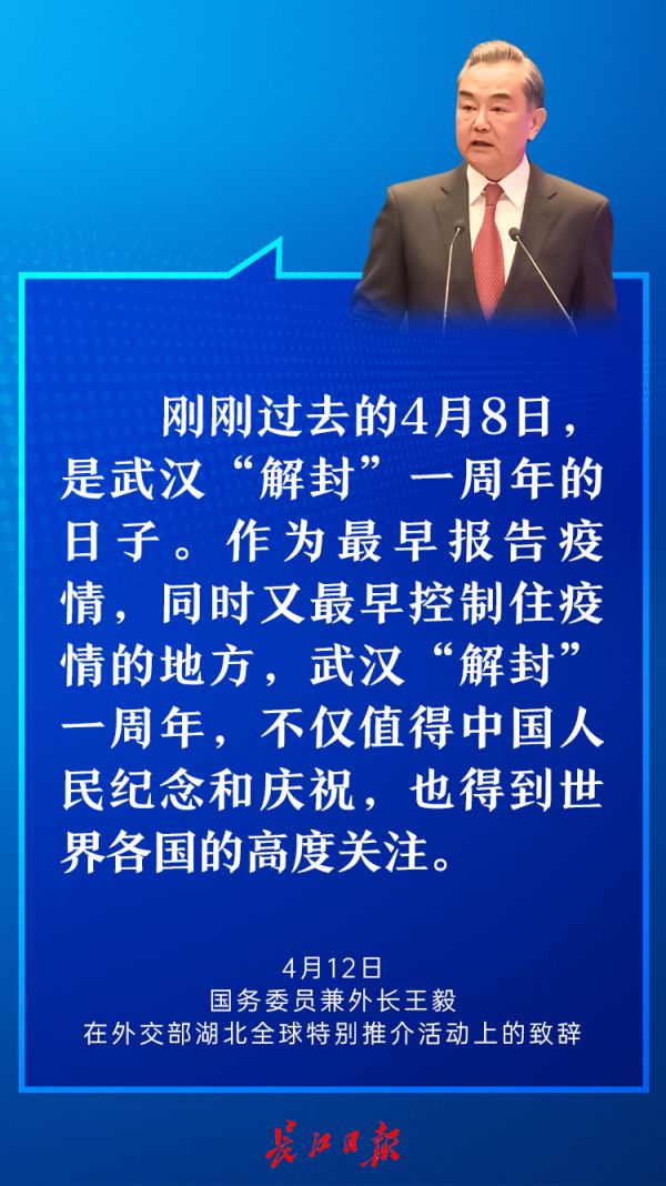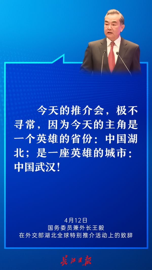 刚刚,王毅向世界推介湖北武汉! 2021-04-12 19:53 长江日报 胡欣 陈智 0 (海报:统筹/整理 | 陈智 设计 | 胡欣 校对 | 王蓓 图片来源 | 央视频直播截图) 【编辑:朱晨颖】 (作者:胡欣 陈智)