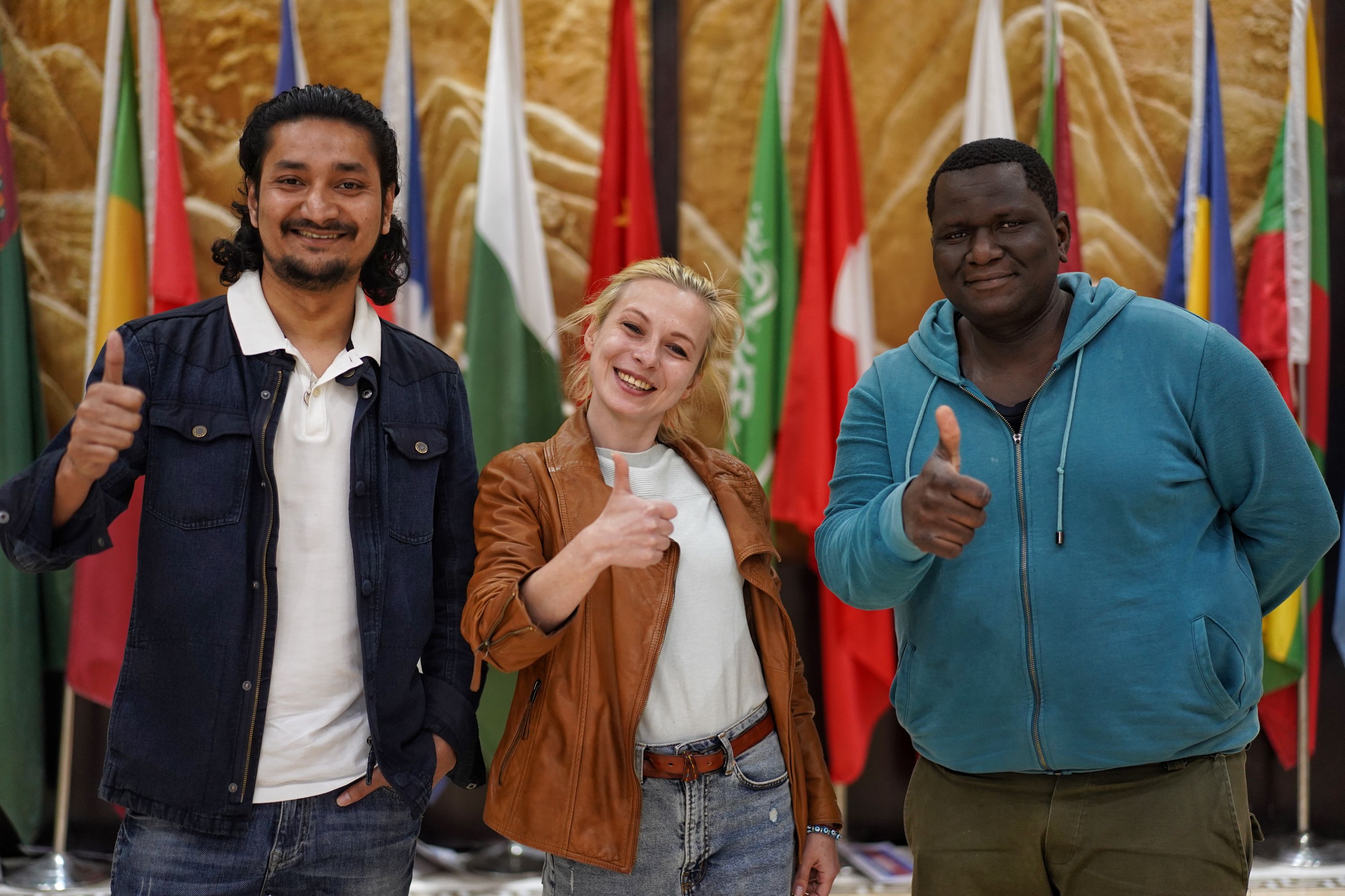 中国地质大学(武汉)留学生安兵(左)、安娜(中)、大明(右)合影。长江日报记者肖僖 摄