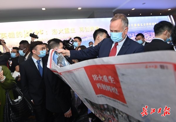 巴林驻华大使安瓦尔·艾勒阿卜杜拉在推介活动现场翻看报纸,通过一幅幅照片感受武汉的样貌,他时不时发出“武汉好美”“武汉恢复很快”“孩子们很可爱”等感叹。他用英文告诉长江日报记者,“这张报纸很有意义,可以全面看到武汉的现状。”