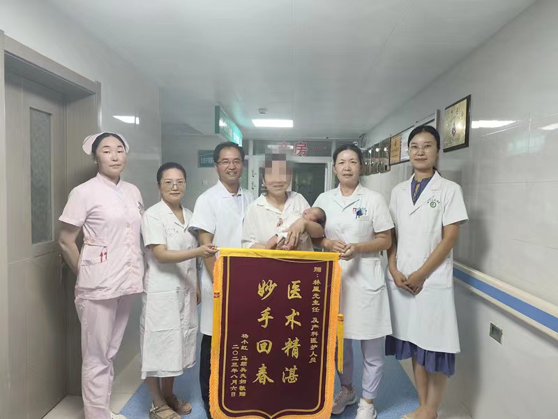 本以为会剖宫产的杨女士心情非常激动,腹部有些宫缩。排空膀胱,口服宫缩抑制剂……两位医生齐心协力,一边耐心地跟杨女士交谈,分散她的注意力,一边垫高孕妇臀部、轻托胎臀出盆腔,缓慢地协助胎儿旋转。终于,经过20分钟的努力,成功将胎儿胎位由臀位纠正为头位妊娠。经超声和胎心监护确认胎儿方位和宫内安全后,林主任也放下了悬着的一颗心。8月4日,杨女士自然发动,顺产分娩一个8斤的健康宝宝,母女平安。6日,即将出院的杨女士一家特意送来锦旗致谢。