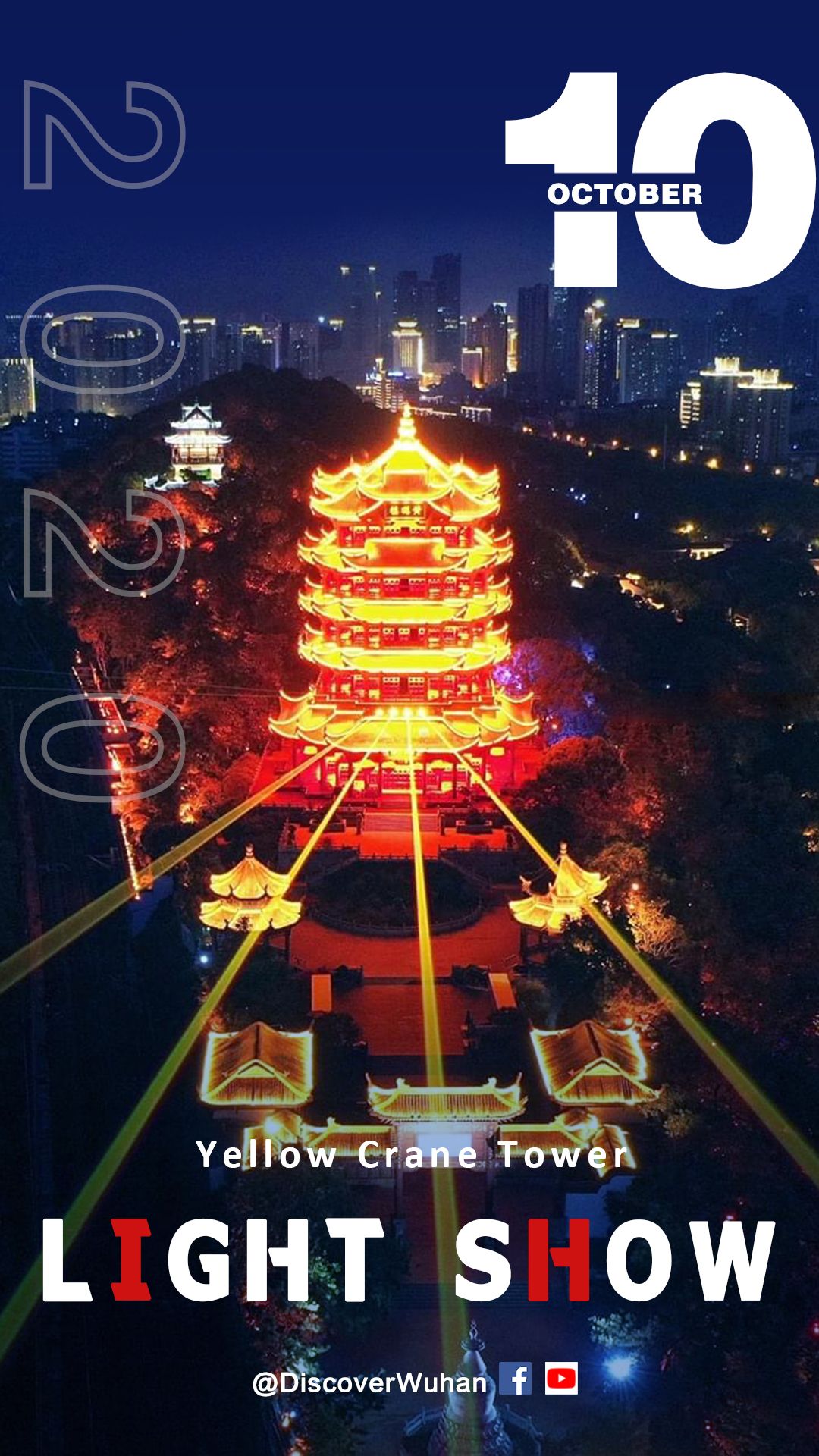 2020年10月,夜黄鹤楼灯光秀。