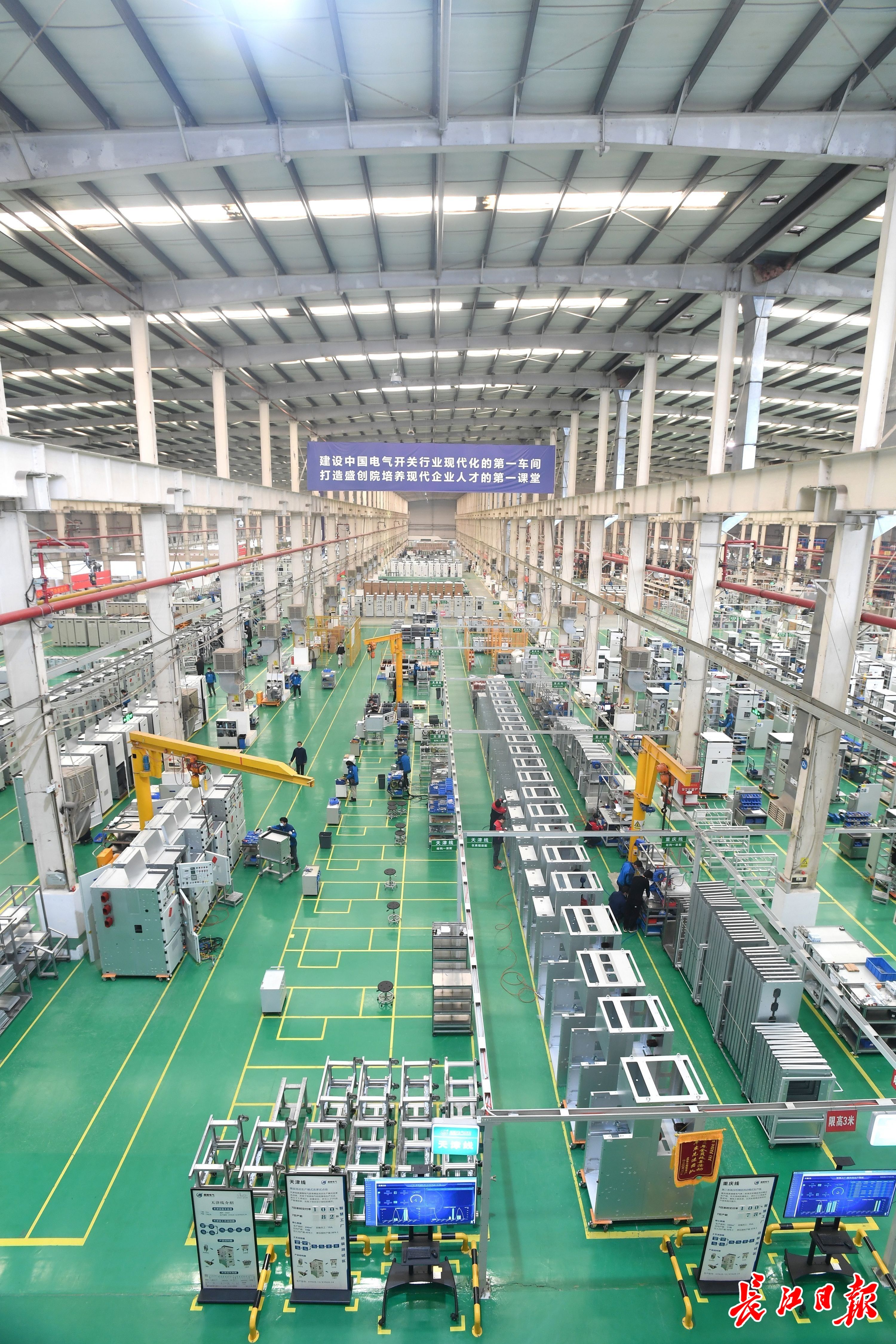 东湖新技术开发区高新二路,盛隆大厦旁边的智慧工厂内,工程师们对一台台崭新的智能配电柜进行最后调试,不日将发往全国各地。 长江日报记者周超 摄