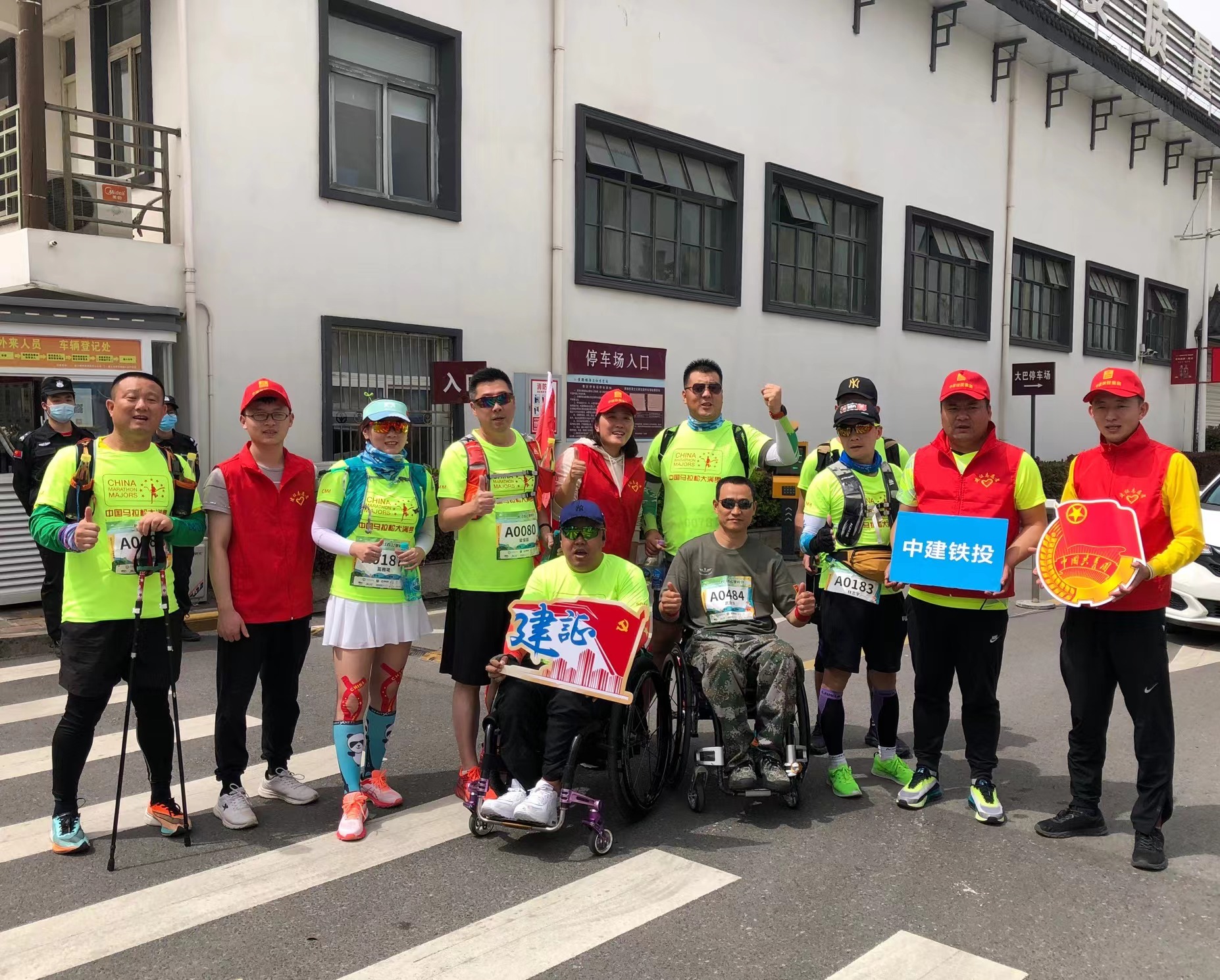 胡洁(左五)在终点附近迎接于乐乐。受访者供图