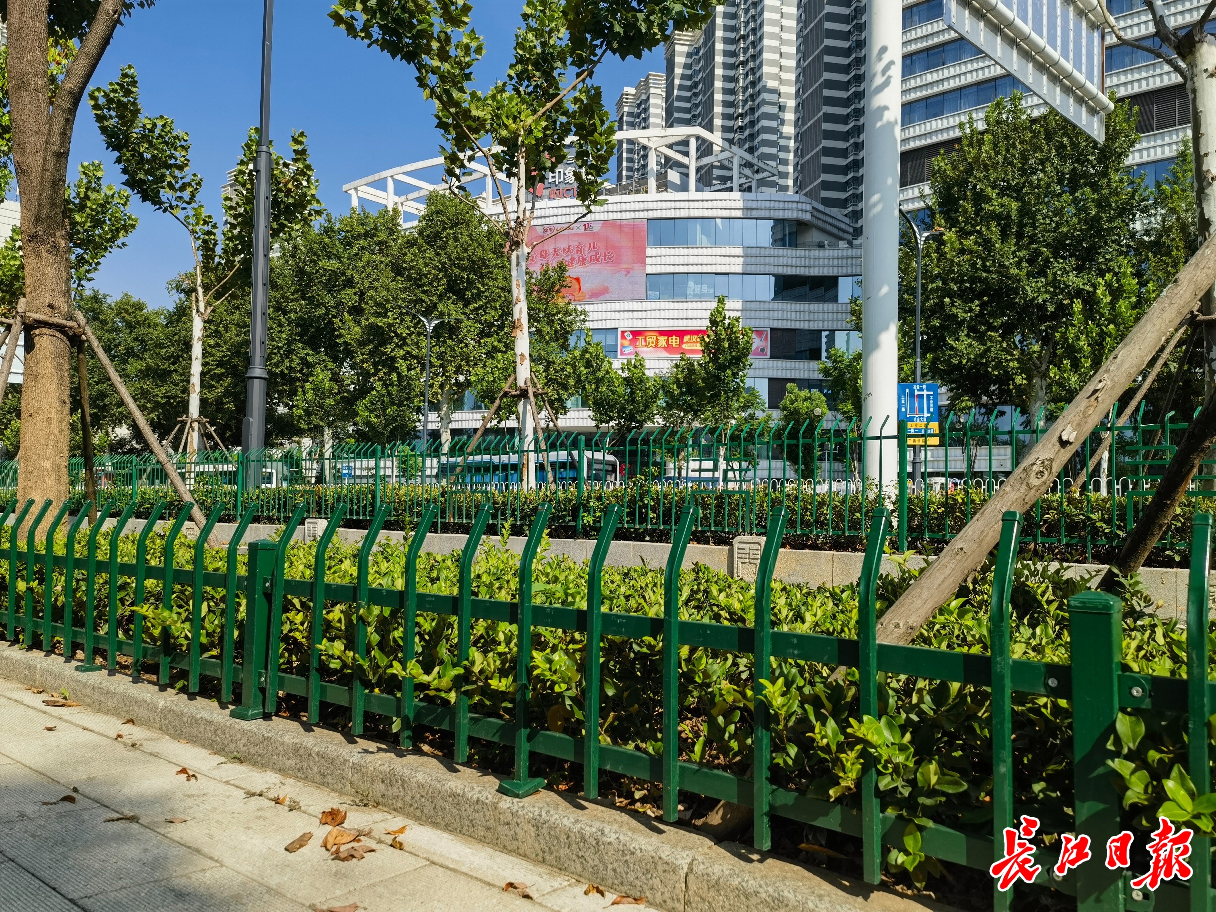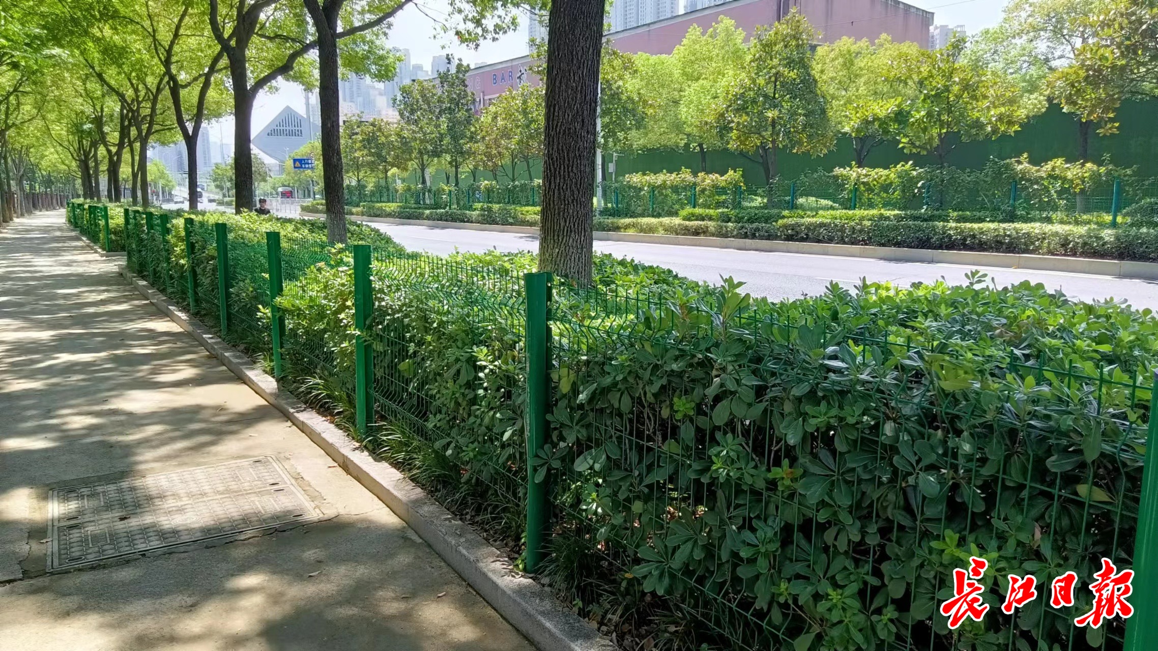 23日中午,记者前往汉阳琴台大道看到,马路两侧均设有绿化带。沿线二三百米长绿化带的护栏立柱防雨盖大多“不翼而飞”,只有少数立柱上有防雨盖。