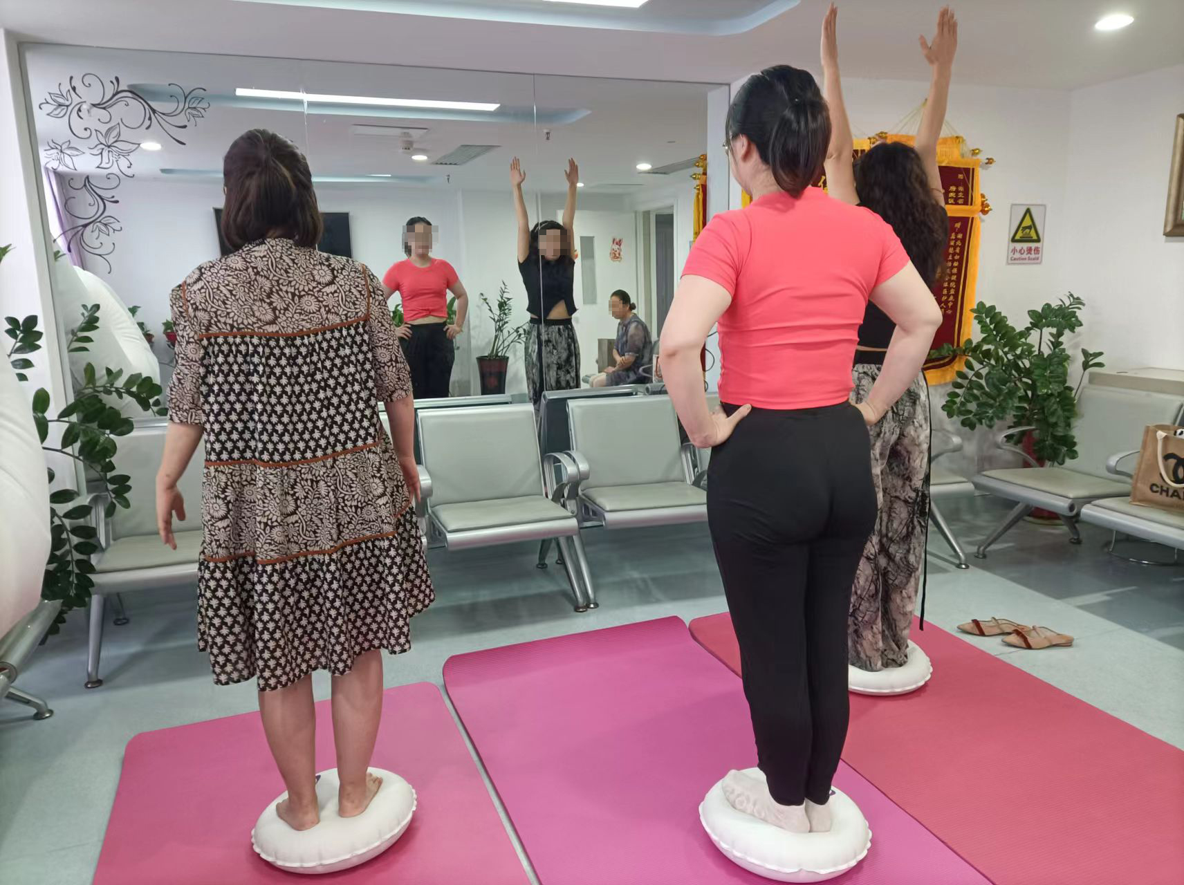 产后新妈妈在省妇幼盆底康复中心进行WAFF孕产运动康复。