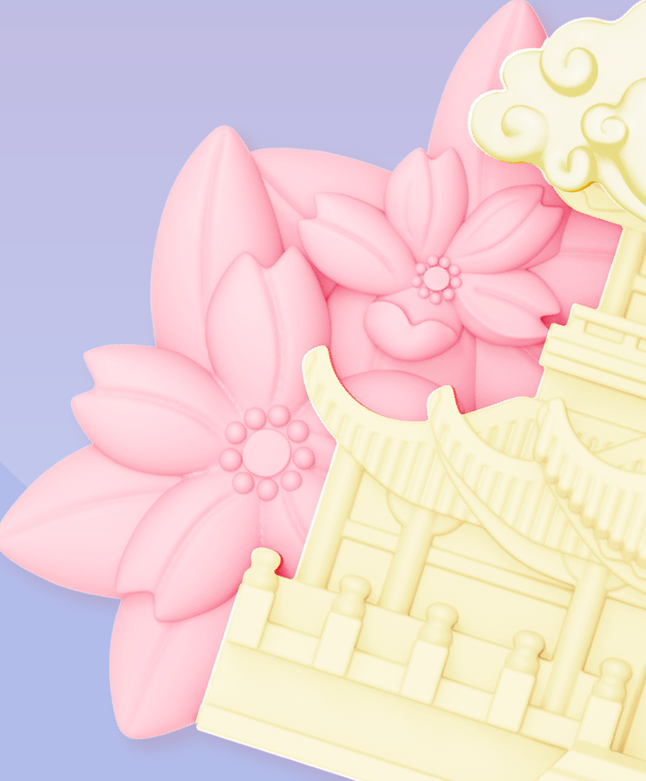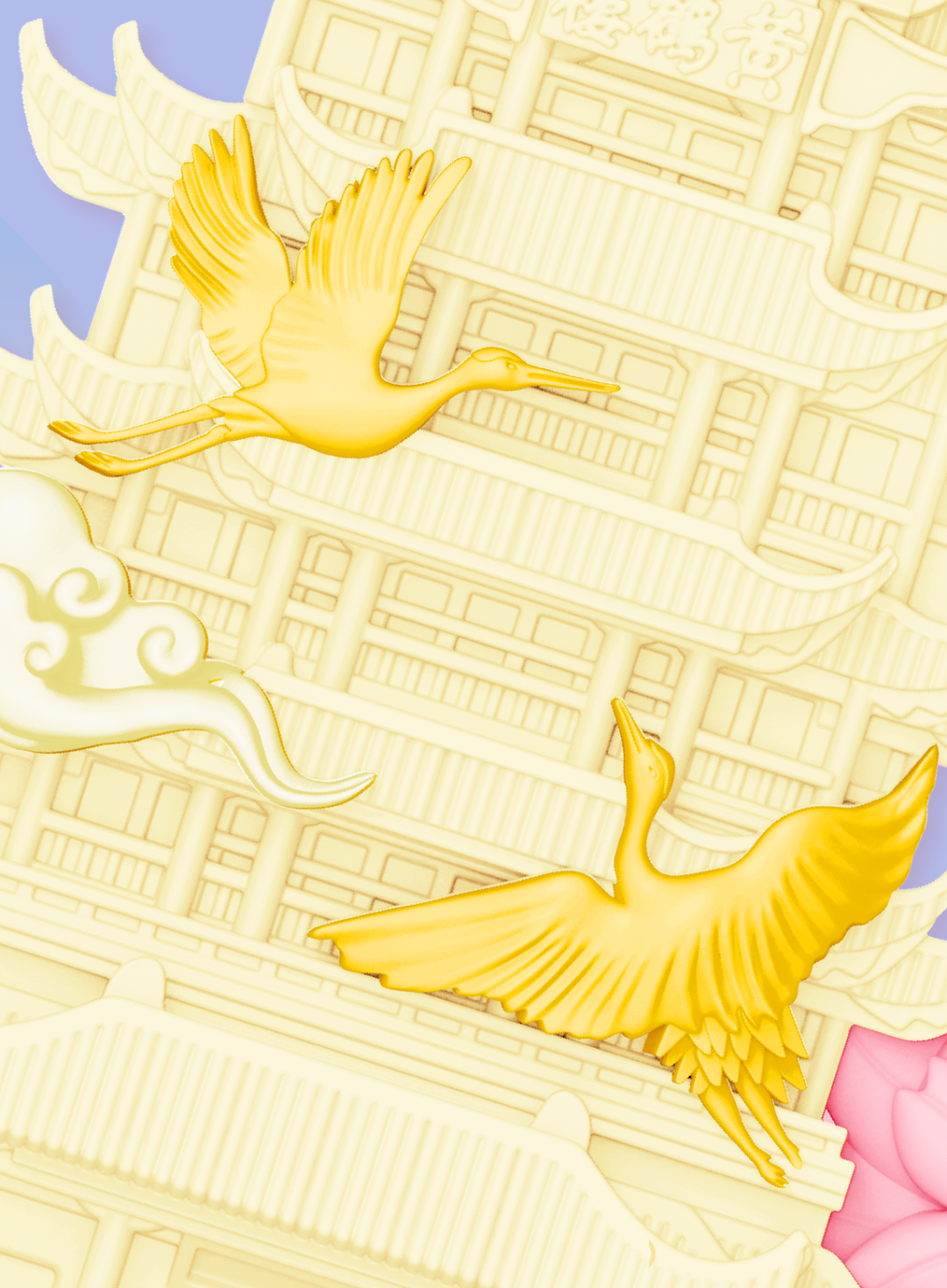 仔细看,新增了梅花、白云、黄鹤三种元素,很契合黄鹤楼仙气缥缈的意境。