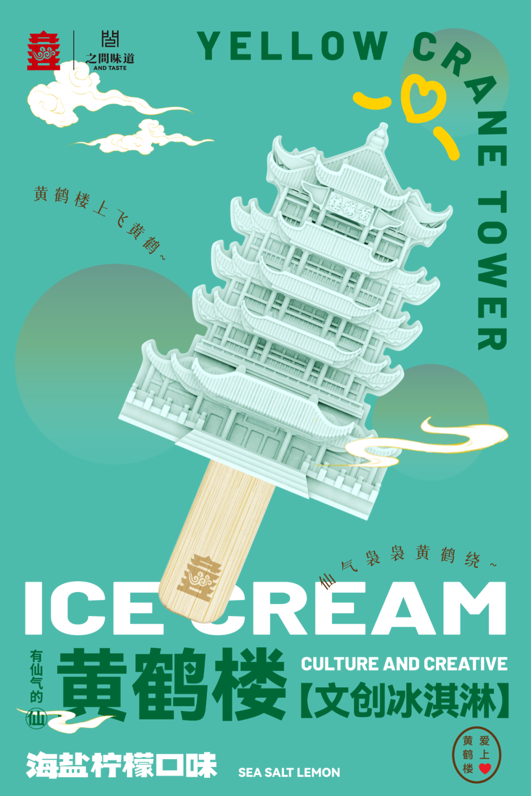 2021年,黄鹤楼推出文创雪糕。上市后,深受大家喜爱。任贤齐、丁真、朱广权等名人打卡拍照,游客入园购买爱不释手。