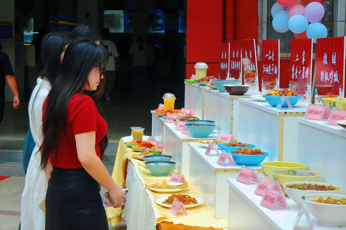 该校北园餐厅在历经暑期升级改造后外观焕然一新。在餐厅前的活动现场,19个餐厅服务窗口共烹饪了黄焖鸡米饭、湖南常德特色米粉、北园王牌烧腊饭等78道招牌菜供新生和家长免费品鉴。“生机蓬勃的校园,香飘四溢的餐厅,让我们耳目一新,品种多样、服务到位,彻底打消了我们到陌生地方的顾虑。”新生和家长赞不绝口。