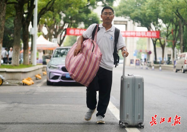 新生报到,不少学生都会将行李提前快递到校,自己轻装上阵入学。苏正民没舍得花钱寄快递,他把一套被褥和枕头装在编织袋里,从凉山一路带到了武汉。