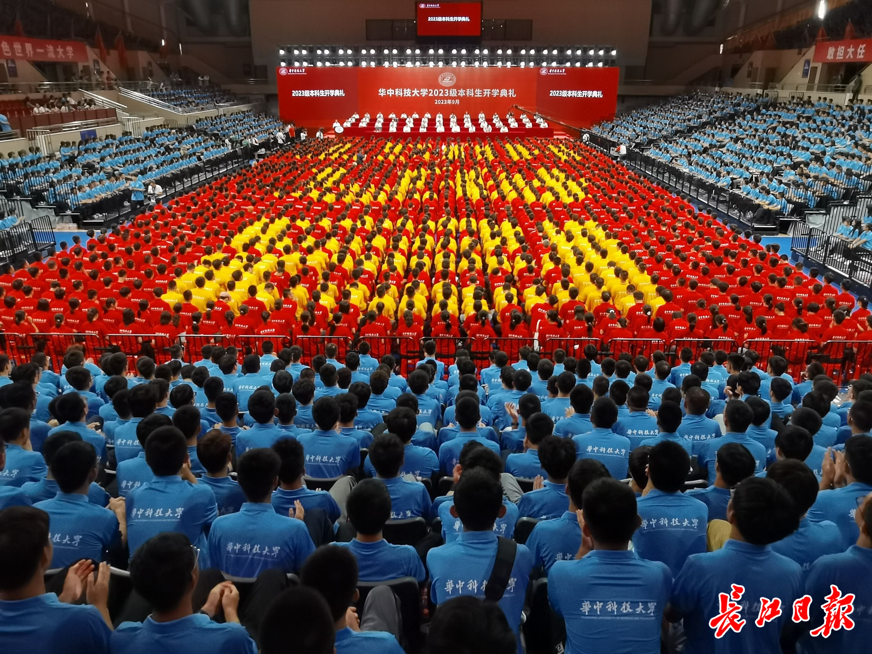 9月7日上午8时30分,华中科技大学在光谷体育馆举行2023级本科生开学典礼。校长尤政院士为新生主讲“开学第一课”,深情寄语7000余名新生。长江日报记者高勇 通讯员高翔 摄
